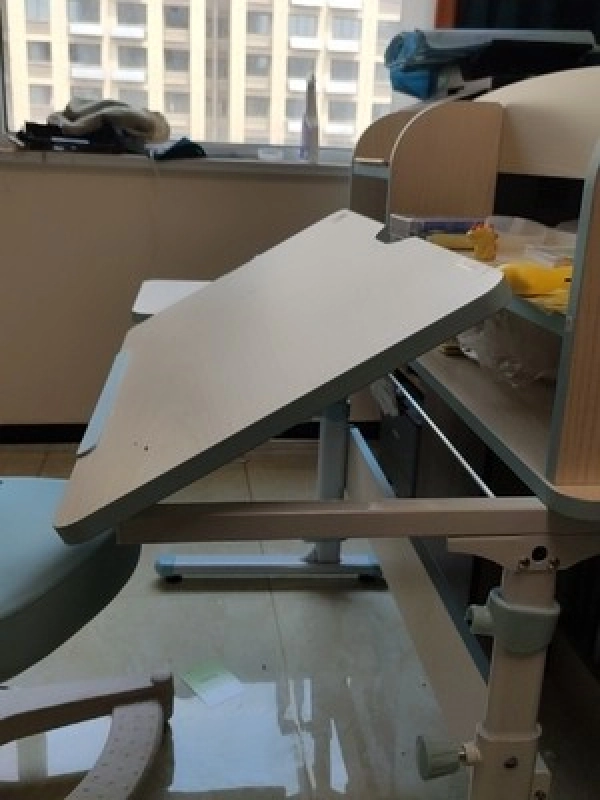 "Thiết kế bàn ghế nâng hạ rất tiện cho các bạn nhỏ ngồi học. Phần mặt bàn có thể xoay mở là một điểm cộng." (Lan - Hà Nội)