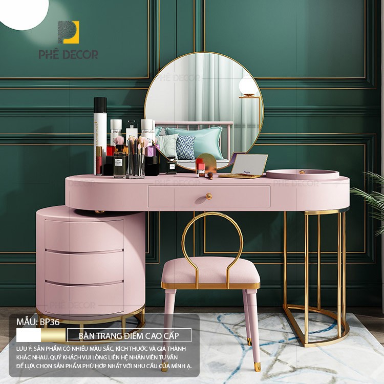 Bạn thích sự đơn giản, nhẹ nhàng của những chiếc bàn trang điểm mang phong cách Bắc Âu, tối ưu công năng sử dụng. Bạn cũng thích có một góc trang điểm lộng lẫy để khi ngồi ở đó bạn được tận hưởng. Bạn thích sự thanh lịch sang trọng của chiếc bàn trang điểm thời thượng dành cho các quý cô. Tất cả đều có trong chiếc bàn trang điểm BP36 của Phê Decor với hình thức mới lạ, độc đáo và cực kỳ chất lượng.
