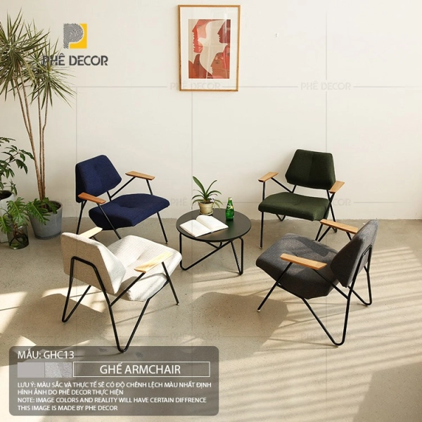 Việc lựa chọn không gian quán cafe thay vì đồ uống không còn là xu hướng xa lạ của giới trẻ hiện nay. Một trong những lựa chọn tạo nên sự khác biệt trong không gian quán đó chính là ghế cafe. Một chiếc ghế cafe độc lạ, thoải mái cùng sự bố trí không gian hợp lý sẽ gây ấn tượng mạnh mẽ cho những vị khách lần đầu đến với quán. Trong khi có sự cạnh tranh quyết liệt trong ngành, chất lượng đồ uống giữa các cửa hàng đang dần được san phẳng thì hãy cùng Phê Decor giới thiệu ngay một siêu phẩm mà bạn không thể bỏ qua - ghế Armchair thư giãn - GHC13.
