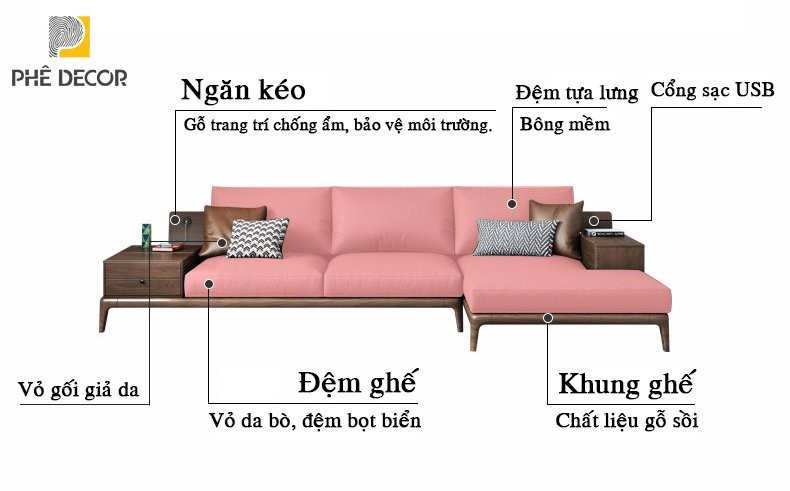 Ghế chữ L - 3m75 x 1.54m: 69,800,000vnđ (đổi vải nỉ: 55,600,000vnđ)