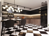 Hãy sử dụng các gam màu sáng như trắng, kem. Thiết kế tủ bếp kịch trần để tận dụng không gian chiều dọc. Sử dụng các bề mặt bóng như Acrylic hoặc kính ốp bếp để tạo hiệu ứng phản chiếu. Bố trí ánh sáng tốt cũng là một yếu tố quan trọng.
