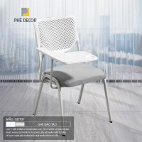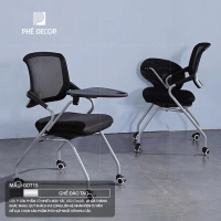 Cấu tạo của loại ghế này thường bao gồm khung chân kim loại (sắt sơn tĩnh điện hoặc mạ inox), phần đệm ngồi bọc vải lưới và mặt bàn nhựa PP hoặc ABS. Điểm đặc biệt nằm ở hệ thống khớp nối cho phép mặt bàn có thể xoay hoặc gập lại khi người dùng muốn đứng lên hoặc khi không có nhu cầu ghi chép.