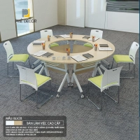 Sản phẩm này được thiết kế với phong cách hiện đại, phù hợp cho những phòng hội thảo yêu cầu sự chỉn chu và sang trọng. Mặt bàn gỗ công nghiệp tiêu chuẩn E1 phủ Melamine không chỉ chống trầy xước mà còn chống thấm nước hiệu quả, giúp việc vệ sinh trở nên dễ dàng hơn bao giờ hết.